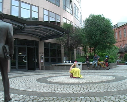 Im vergangenen Juni, praktisch per Zufall, begann sich für mich eine mögliche Lösung abzuzeichnen: Zu den Moabiter Kulturtagen vom 28.06. bis 1.07.2007 organisiert vom Kunstverein Tiergarten entwickelte ich Tanz-Performances zu drei Standorten dieses Berliner Bezirkes, in dem ich selber beheimatet bin.