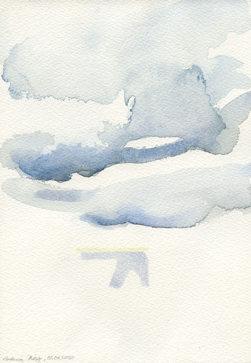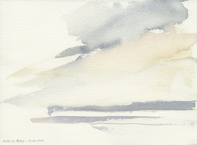 Himmelsraum über Havel und Schwanwerder am 11.06.2020, Aquarell auf Arches-Aqurellpapier, 23 x 31 cm , Foto: Thomas Keller |