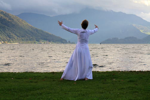Die Arbeit Heimspiel - o.T. von 2013 nutzt das Mittel der Inszenierung, bedient sich bei der Bildsprache des Symbolismus, spielt genüsslich mit idealistischen und religiösen Selbst- und Weltbildern. Sie wirft einen subjektiven Blick auf Fragmente von in der Zeit unterschiedlich verorteten Welten und Haltungen, auf in eine Gleichzeitigkeit gebrachte Aspekte, die nicht nur "ihrem" Zug anhaften, das landschaftlich idyllisch gelegen auf Schwindel erregende Weise einer monetär angetriebenen Verstädterung und Gentrifizierung folgt.