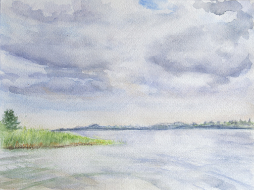 Die Müritz bei Waren, abends, 18.07.2005 Aquarell auf Bütten, 32 x 24 cm, Foto: Silvia Sinha |