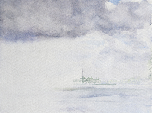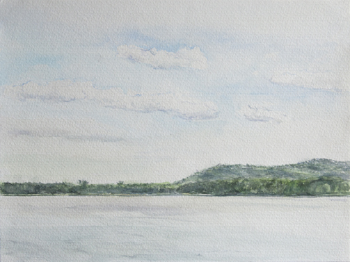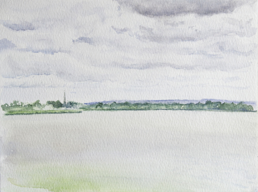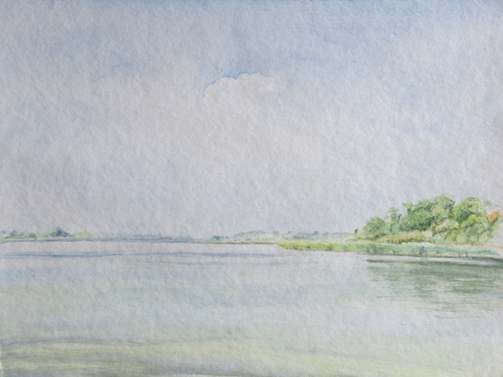 Blick über den Müggelsee Richtung Müggelberge, 28.08.2005 32 x 24 cm, Aquarell auf Bütten, Foto: Silvia Sinha |