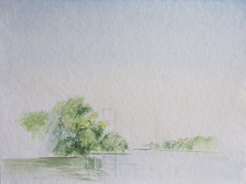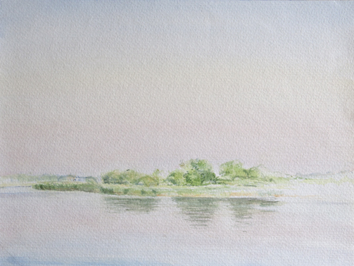 Kälberwerder von Kirchmöser aus gesehen, Brandenburg bei Berlin, 2, 08.09.2005 21 x 30,5 cm, Aquarell auf Bütten, Foto: Silvia Sinha |