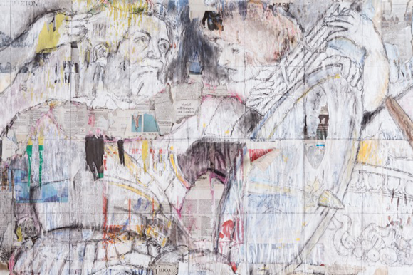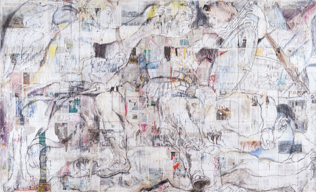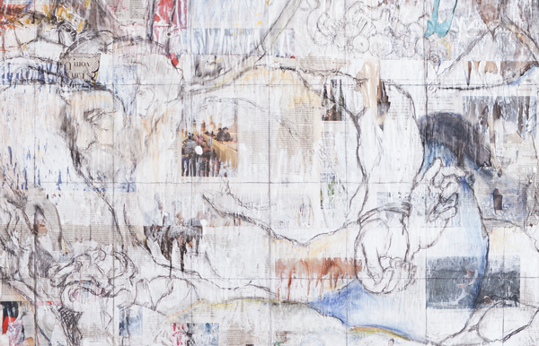Deconstructing Rubens II Kohle, Kreide und Bleistift auf Zeitung, 161 x 263 cm, 2017 - 2018, Foto: Thomas Keller |