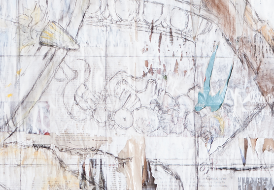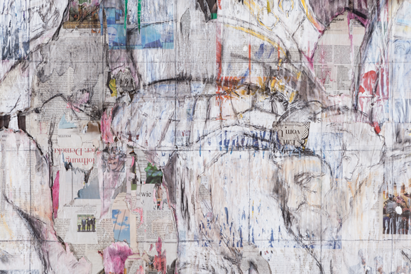 Deconstructing Rubens II, Detail Kohle, Kreide und Bleistift auf Zeitung, 161 x 263 cm, 2017 - 2018, Foto: Thomas Keller |
